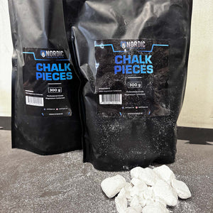 Chalk pieces are pieces of chalk that are in a bag. It is very easy to apply to the hands or clothes and is often used by people who practice crossfit, strength training or strongman.